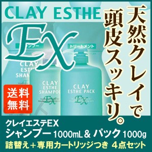 【4点セット】モルトベーネ クレイエステ シャンプーEX 1000ml + パックEX 1000g 詰め替え + 詰替専用空ポンプ 送料無料 即納
