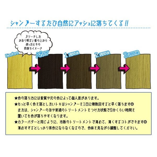 シャンプーだけで落ちてくる「黒」と「茶」! 急な事情で黒髪や茶髪にしたくなった、でもまた明るくしたい・・・そんなときは迷わずコレ!
