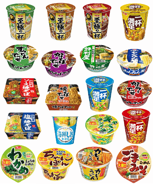 明星食品・大黒食品のカップ麺を、種類豊かにセットしました。開ければテンションマックスセット
