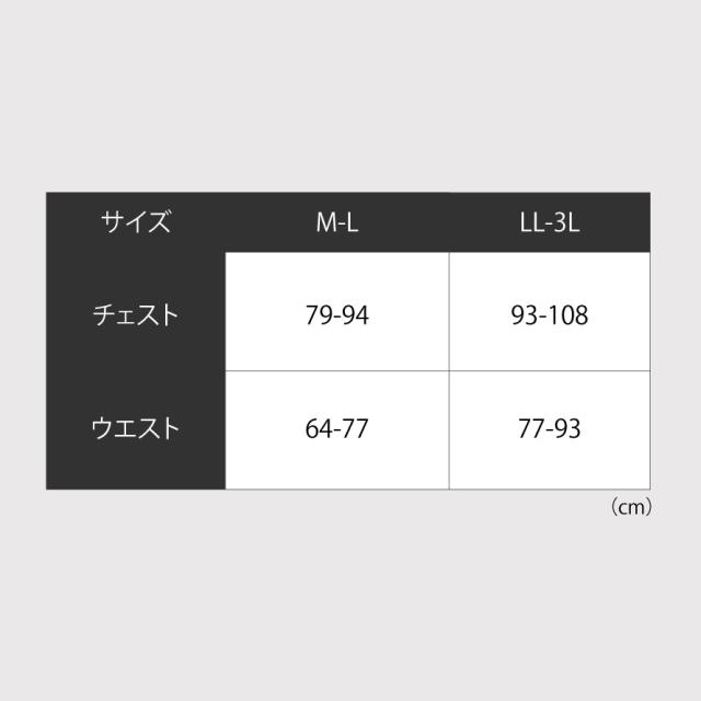 ■サイズ:M-L/バスト79-94、ウエスト/64-77、LL-3L/バスト93-108、ウエスト/77-93cm