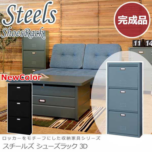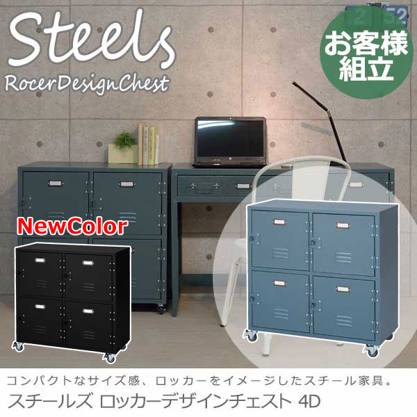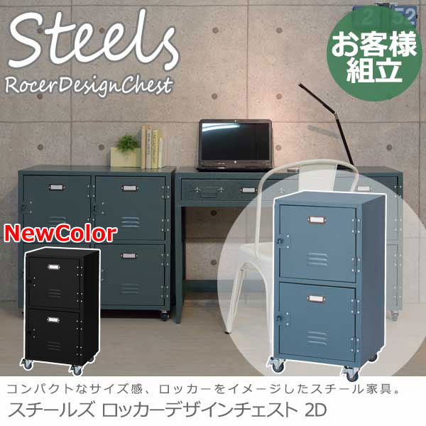 Steels スチールズ ロッカーデザインチェスト2D (アメリカン スチール デスク収納 コンパクト ブルー レトロ 西海岸 おしゃれ)