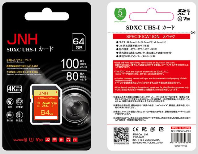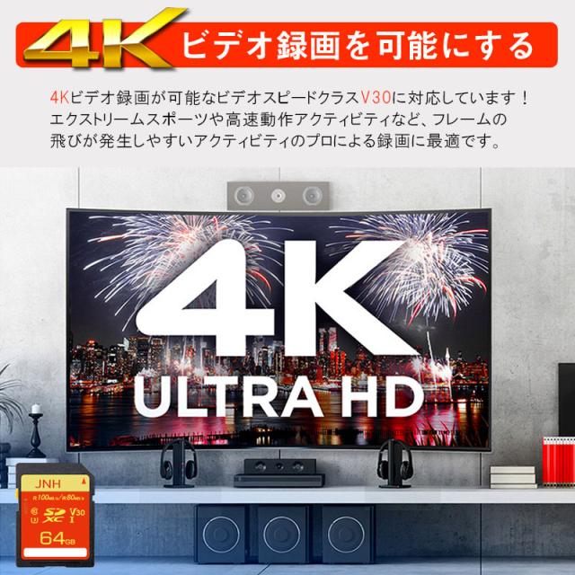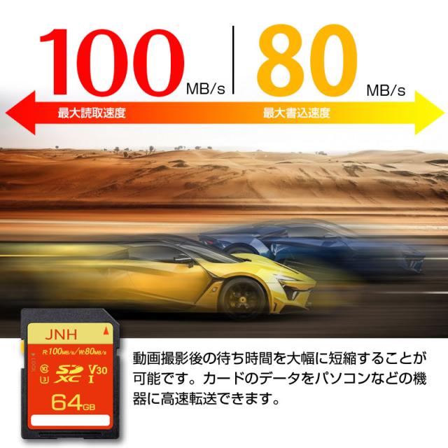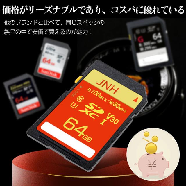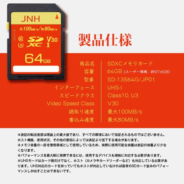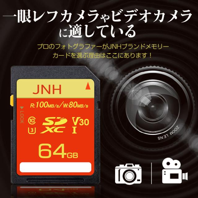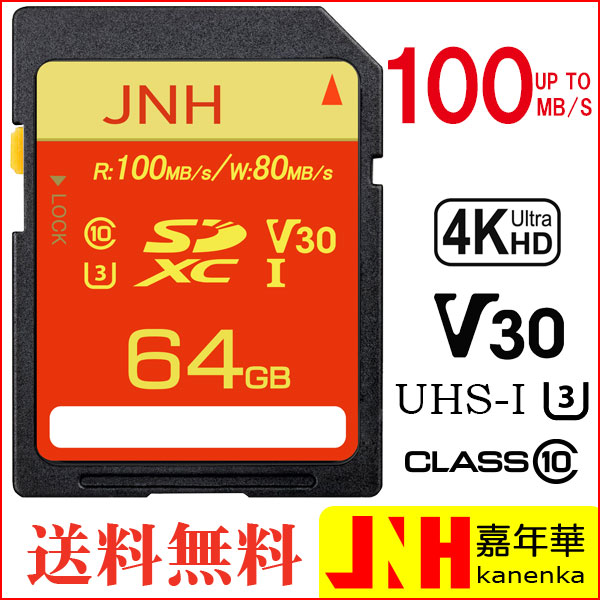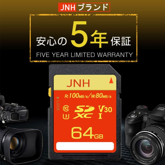 SDカード SDXCカード 64GB JNHブランド 超高速R:100MB/s W:80MB/s Class10 UHS-I U3 V30対応 4K Ultra HD 国内正規品5年保証 送料無料 ポイント消化