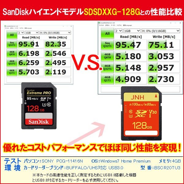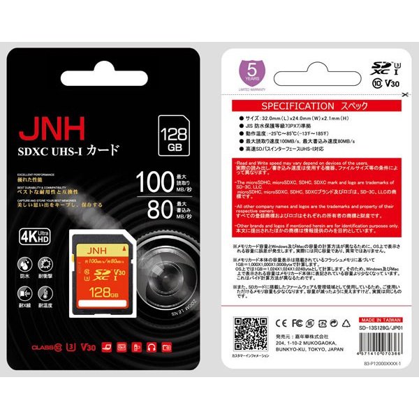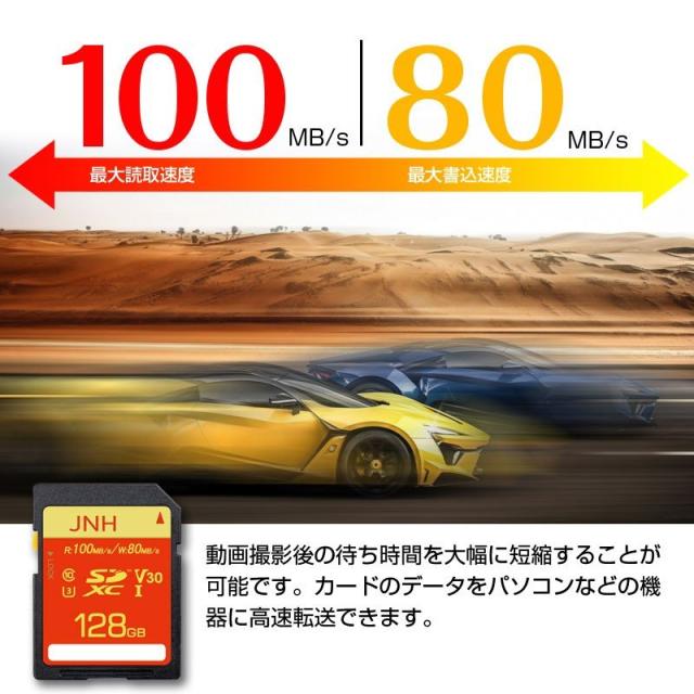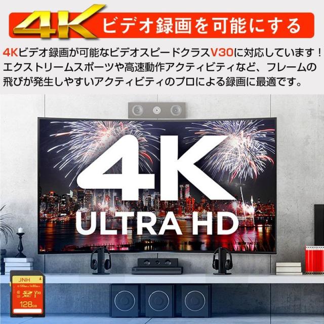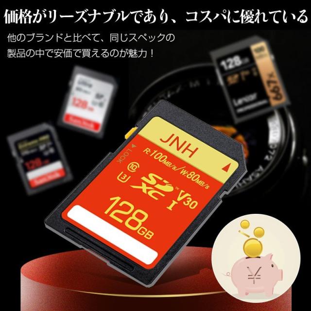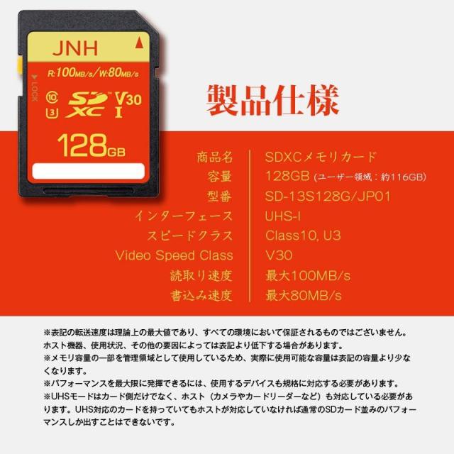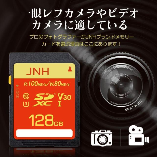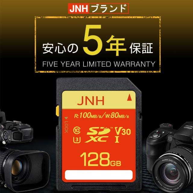 送料無料 SDカード SDXCカード 128GB JNHブランド超高速100MB/S Class10 UHS-I U3 V30対応4K Ultra HD【国内正規品5年保証】 パッケージ品 ポイント消化