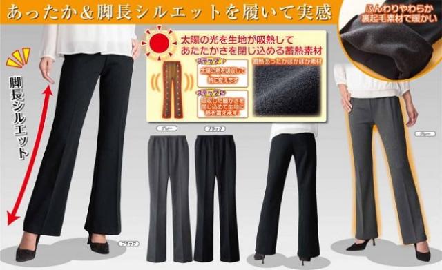 パンツ ボトムス スラックス レディース 秋冬 蓄熱あったか裏起毛パンツ ブラック M