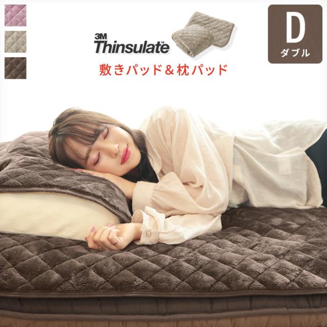 敷きパッド&枕パッド ダブルサイズ あったか シンサレート 敷パッド まくらパッド ウォッシャブル A758