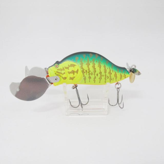 特徴的な樽型ボディはビッグベイト並の力強い水押しアクションを発生させ、