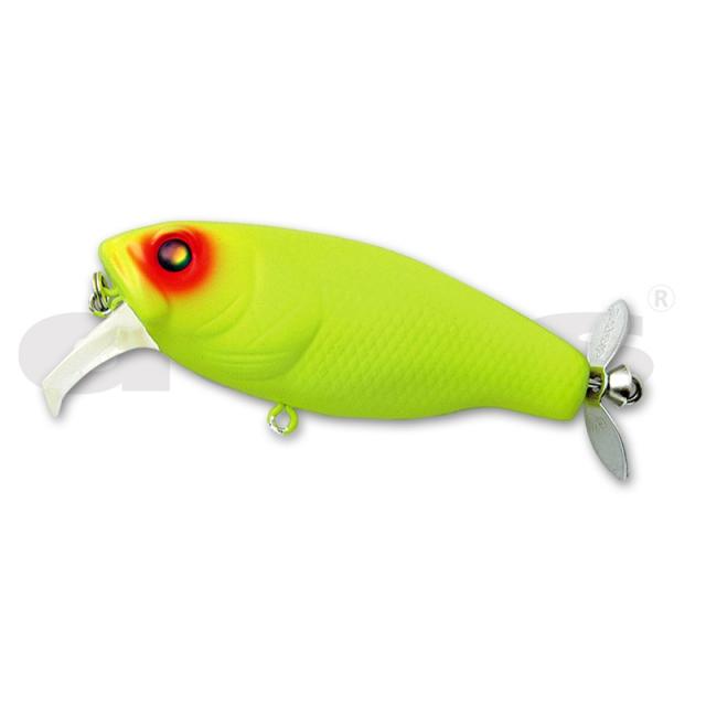 バズジェットJr.のボディサイズに合わせてカスタムされたステンレスプロップは、テーブルターンやダイビング時のアクションを妨げることなく、フラッシングと水飛沫でアピールします。