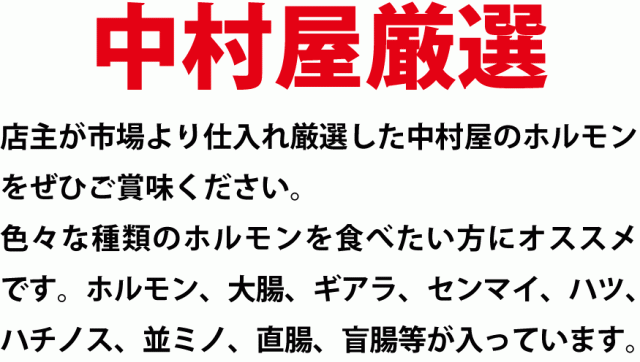 - 今回もリピ。 ホルモンが大好き! いつも、美味しく頂いています。