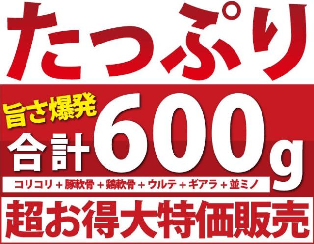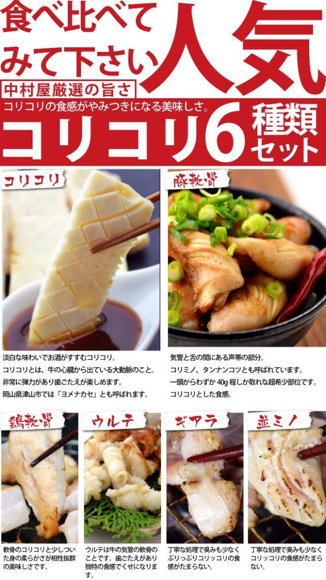送料無料 コリコリ6種盛り コリコリ焼き 豚軟骨 鶏ナンコツ ウルテ ギアラ 並ミノ 各100g 国産 牛肉 ホルモン焼き 焼肉 もつ鍋 牛ホルモン バーベキュー BBQ 母の日 父の日