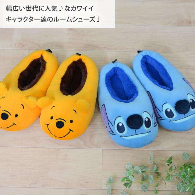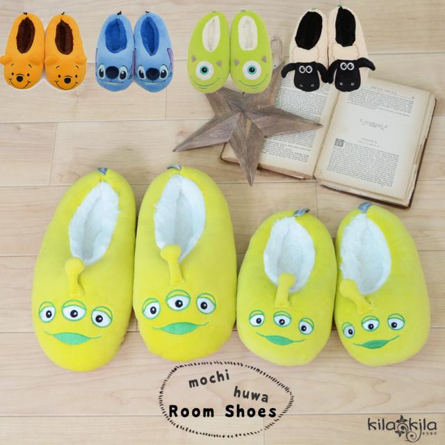 ルームシューズ スリッパ 子供 18〜20cm レディース 親子 お揃い もこもこあったか ディズニー プーさん スティッチ マイク 室内履き 防寒 雑貨 おうち時間 秋 冬