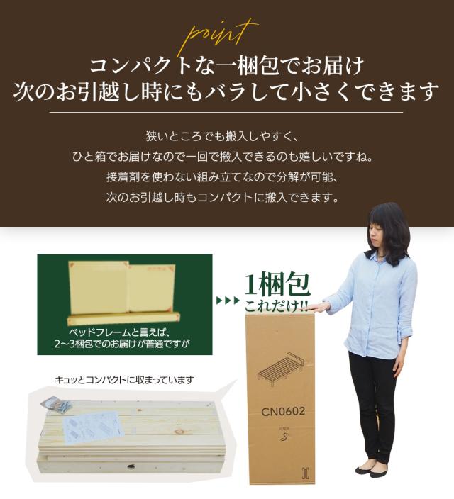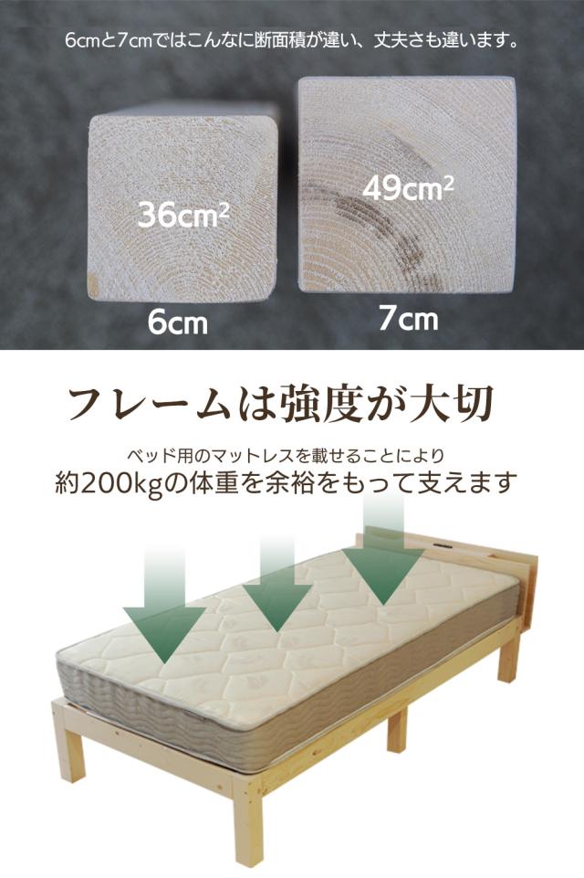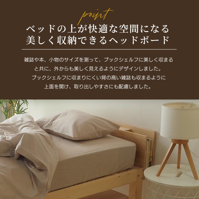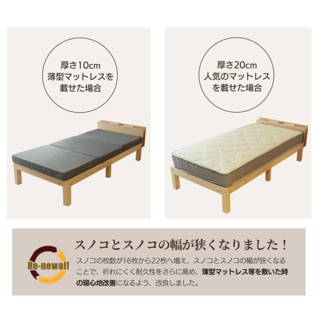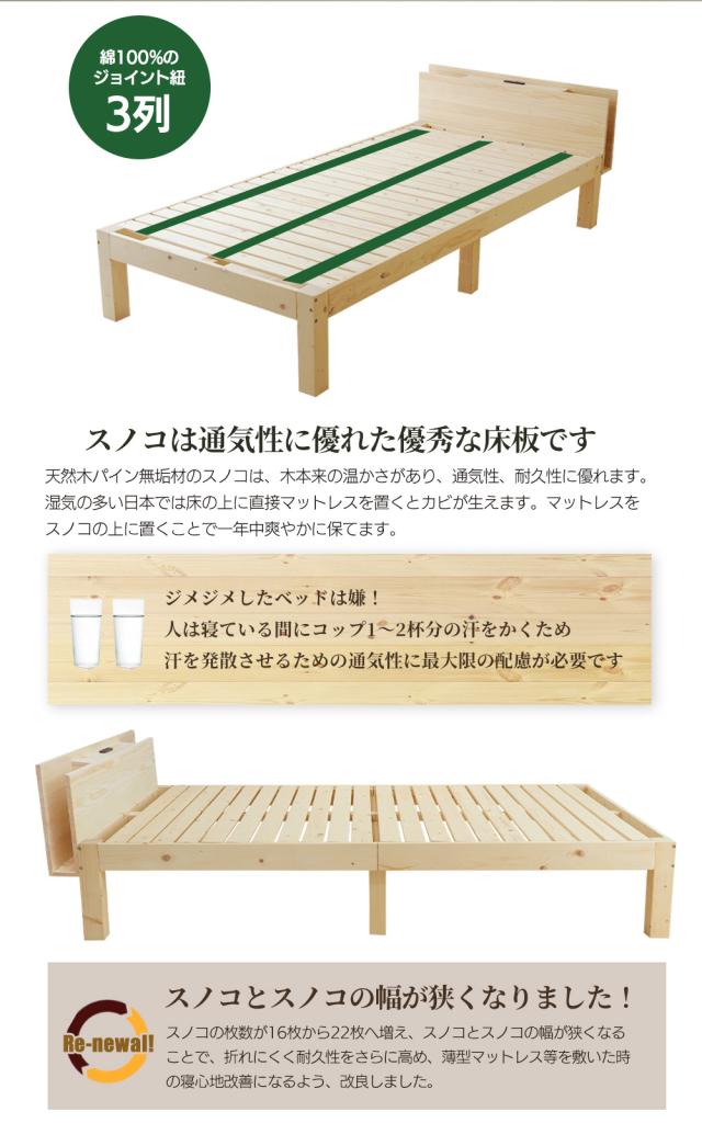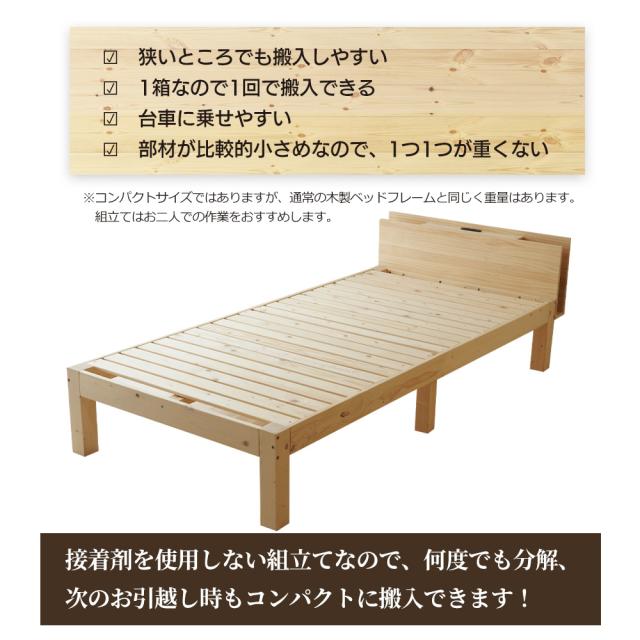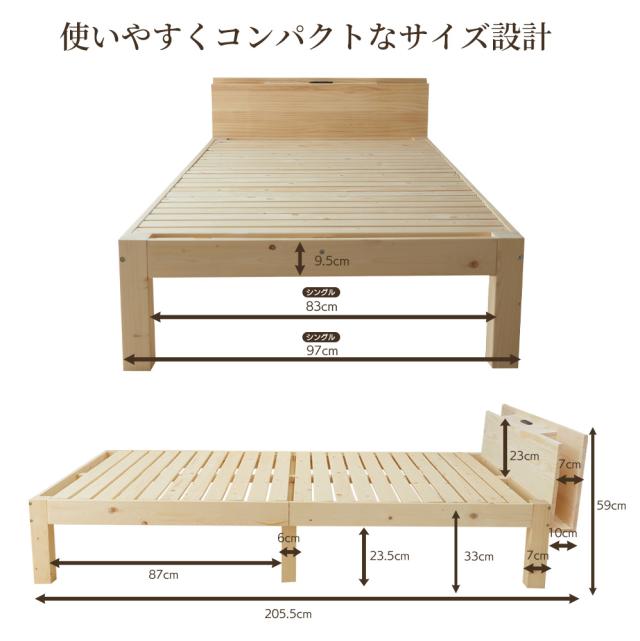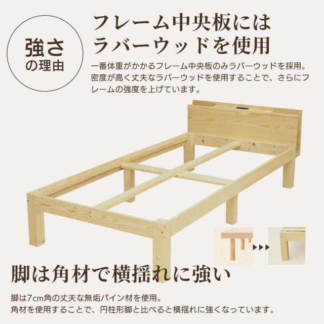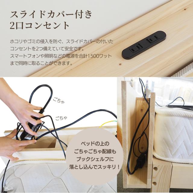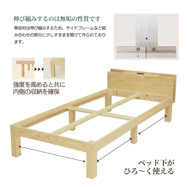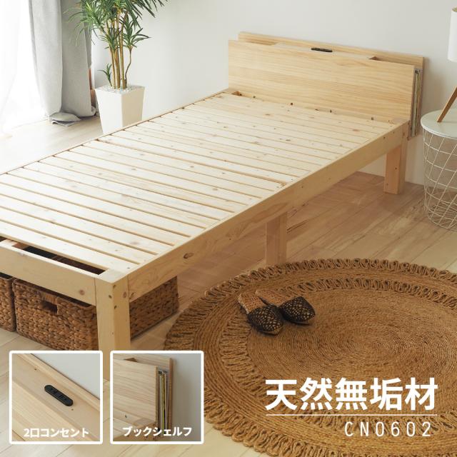 真骨頂 宮付き ベッドフレームのみ 北欧パイン 無塗装 無垢材 木製ベッドフレーム シングル CN0602 (棚・2口コンセント付)