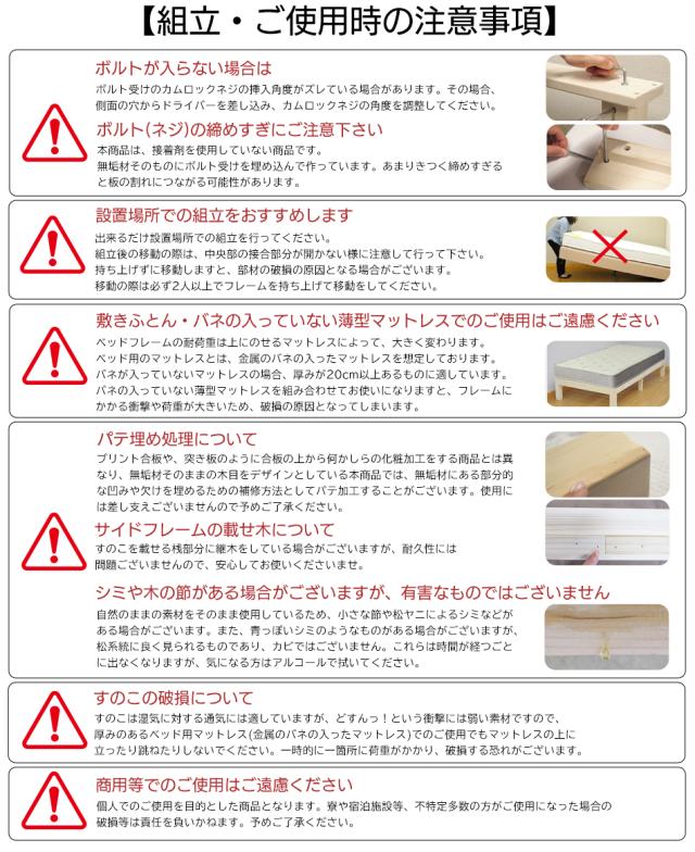 - 迅速な対応ありがとうございました。 電話などの対応もとても親切で良かったです。 商品も女1人で1時間くらいで組み立てれました。実際寝てみて、ギシギシ音もならくて丈夫で買って良かったです。