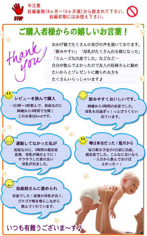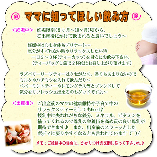 - 正期産の時期に入ってから飲み始めました。 出産はまだなので効果はわかりませんが、ティーバッグなので毎日飲みやすいですし、味も問題なくいけます。 期待を込めて☆4です。
