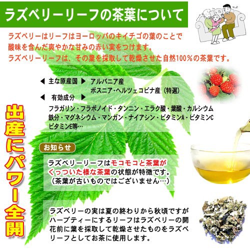 - リピーターです。 子宮筋腫になったのをきっかけに、ラズベリーリーフを飲み続けています。 ティーバッグだからお湯を注いで蒸らすだけなのでよく、手間がかからず簡単で重宝してます?