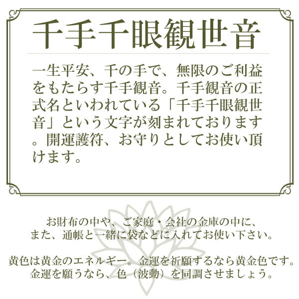 ◇金属製で金色のカードに千手千眼観世音の絵柄が施されております。
