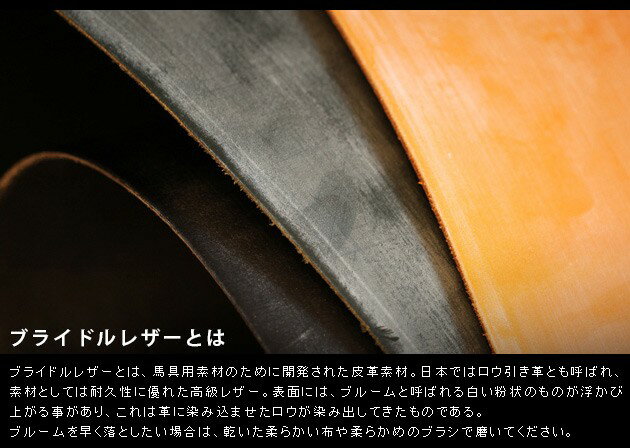 独特の製法により一般のブライドルレザーよりもより上質の光沢をだし耐久性も兼ねた牛革です。