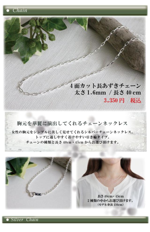 メール便送料無料 シルバー 4面カット 長あずきチェーン40cm×1.6mm スターリングシルバー ネックレス シルバーアクセサリー プレゼント ギフト (小豆 2026