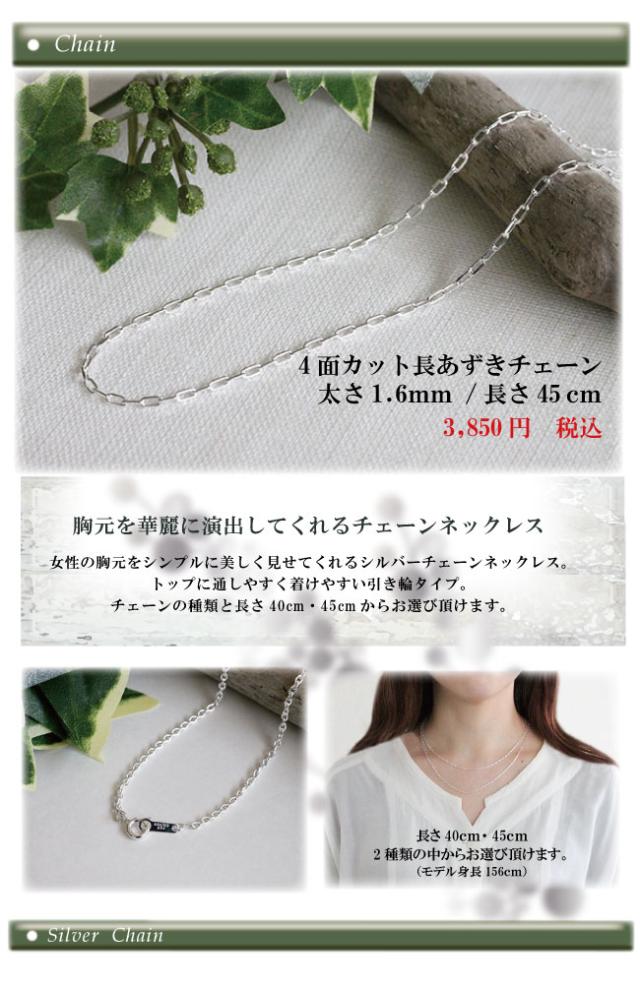 メール便送料無料 シルバー 4面カット 長あずきチェーン45cm×1.6mm スターリングシルバー ネックレス シルバーアクセサリー プレゼント ギフト (小豆 2026