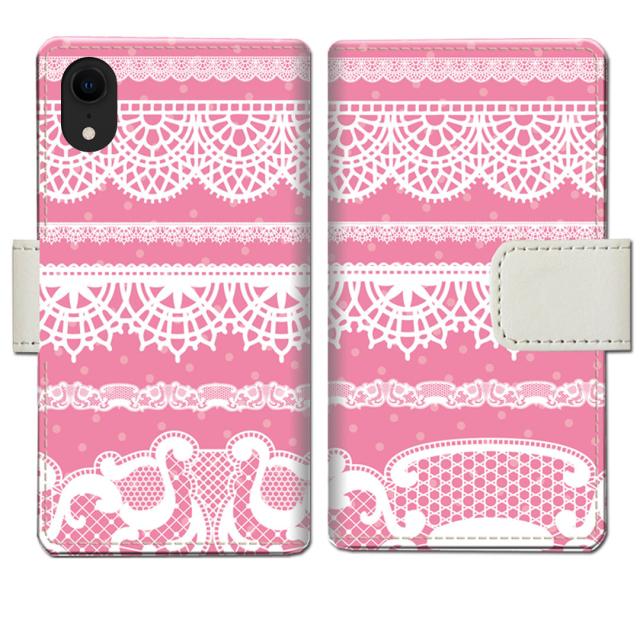 apple iPhoneXR 手帳型 スマホケース アイフォンXR 手帳ケース 手帳カバー【ピンキーレースBOADERデザイン】