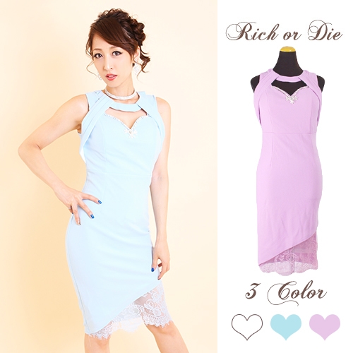 送料無料 沖縄、離島の方は除外です 裾レース重ねパール&クリスタルビジュー装飾SEXYドレス キャバドレス・小悪魔アゲハageha・パーティードレス