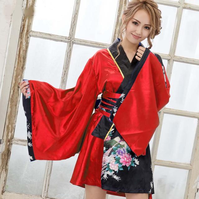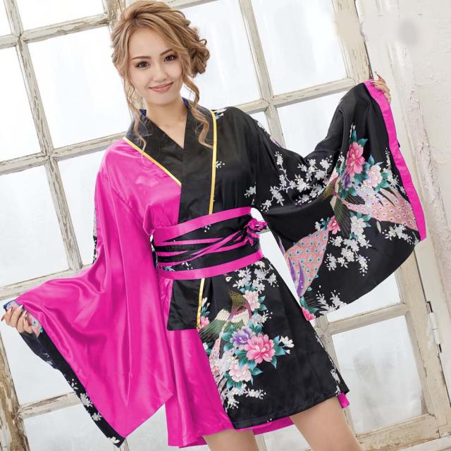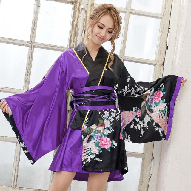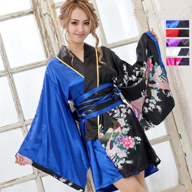 ダンスイベント,ダンス衣装,花魁衣装と様々なシーンで人気のサテン和柄豪華花魁ミニ着物ドレス