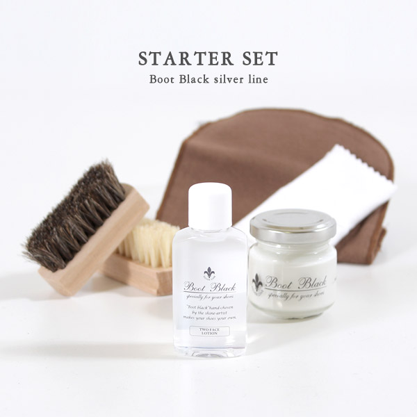 靴のお手入れ 入門用に最適 靴クリーム 汚れ落としローション 靴ブラシ クロス グローブクロス をセットにしました COLUMBUS Boot Black silver line