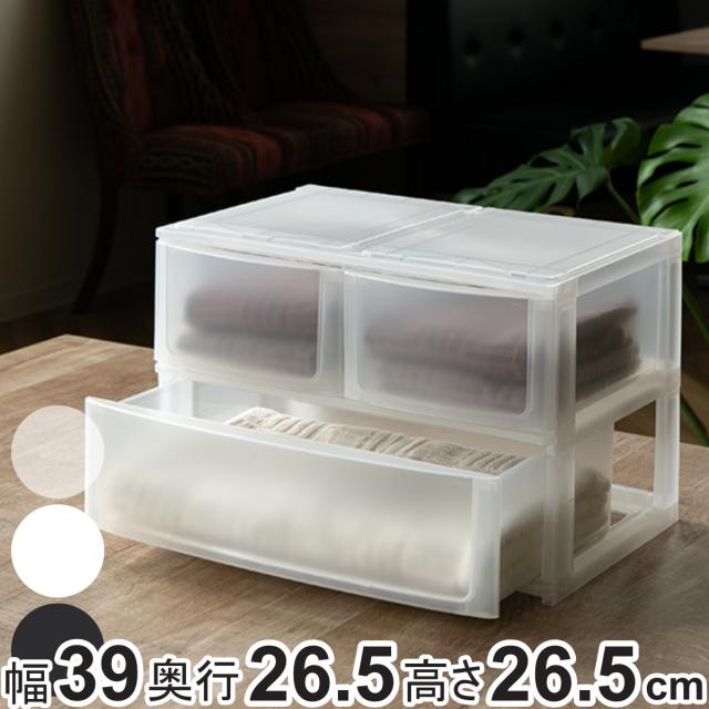 収納ケース 引き出し 幅39×奥行26.5×高さ26.5cm ワイド 深ショート2 深1段 ( 収納ボックス プラスチック 小物 収納 積み重ね スタッキング ナチュラ ポスデコ 上 2列 2段 小物入れ 深型 幅広 仕分け 幅39 デスク収納 机上収納 39 )