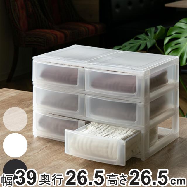 収納ケース 引き出し 幅39×奥行26.5×高さ26.5cm ワイド 浅ショート6段 ( 収納ボックス プラスチック 小物 収納 積み重ね スタッキング ナチュラ ポスデコ 2列 3段 小物入れ 浅型 幅広 仕分け 幅39 デスク収納 机上収納 39 )