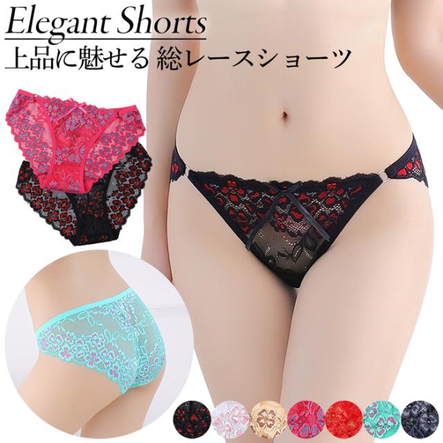総レース ショーツ レディース 花柄 フルバック 透け感 リボン 金具つき エレガント 大人 上品 華やか セクシー ストレッチ ランジェリー 響きにくい 1527 プレゼント ギフト 母の日 父の日 敬老の日 バレンタイン ホワイトデー クリスマス