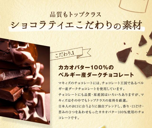 <ベルジャンチョコレート45g> エネルギー:261kcal たんぱく質:3.3g 脂質:19.4g 炭水化物:18.9g 食塩相当量:0.01g