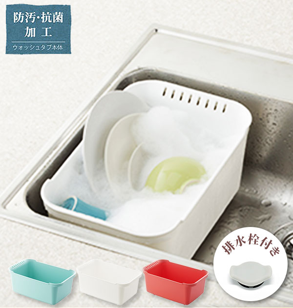 洗い桶 Liberalista リベラリスタ 通販 リベラリスタ ウォッシュタブ おしゃれ 食器洗い キッチン シンク すすぎ つけ置き スクエア 四角 白 赤 レッド ホワイト ブルーグリーン スタイリッシュ たらい 洗桶 洗いおけ 排水栓付き 持ち手付き 台所用品