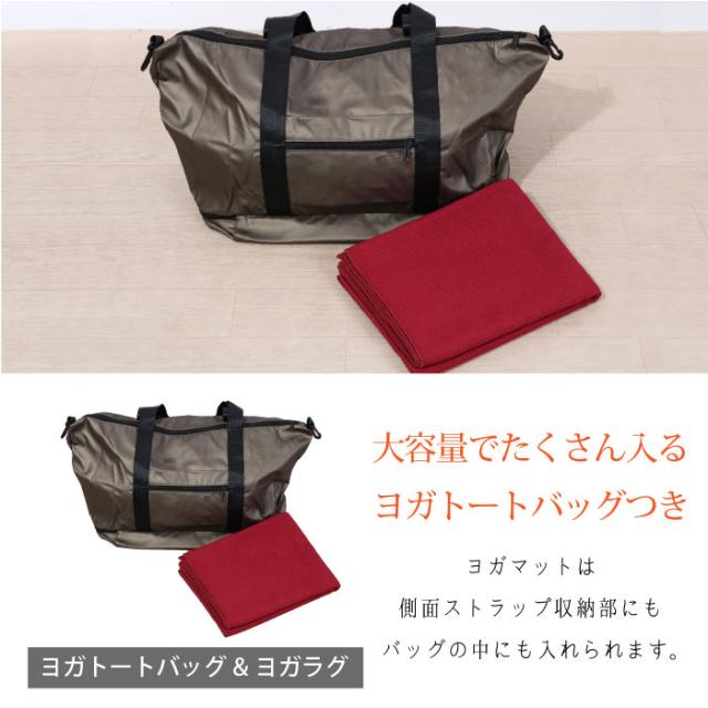 ホットヨガを今すぐ始められる、コーデ一式とヨガマット・ヨガバッグのセット。吸汗ストレッチ素材で汗をかいても快適にヨガを楽しめます。ヨガトートバッグは大容量で外付けストラップ部分にヨガマットを収納可能。ホットヨガに通うのが楽しくなるヨガウェアセットです。