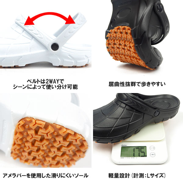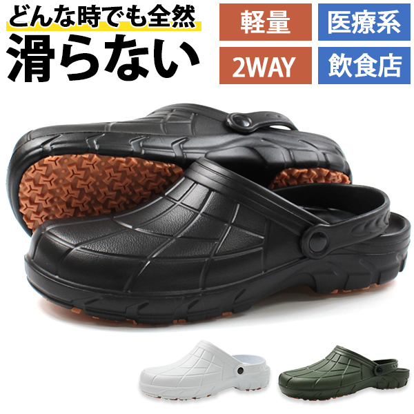 サンダル メンズ レディース クロッグ サボサンダル 靴 滑りにくい 穴なし 防滑 仕事 厨房 飲食店 医療 病院 2way シンプル 軽量 軽い 疲れない 穴なし 幅広 甲高 通気性 ナースシューズ コックシューズ カルカル KARU KARU HM9050