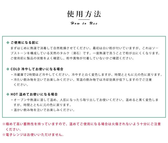 - この器は最高です思ったとおりの品物です。ビールは冷えたままだし焼酎もホッピーで割って飲んで旨いし、この器なら死ぬまで使えるな最高???また今度は日本酒を飲むのにおちょこが欲しいです。石の表面からマグネシウムが銀色キラキラ光って見えます。