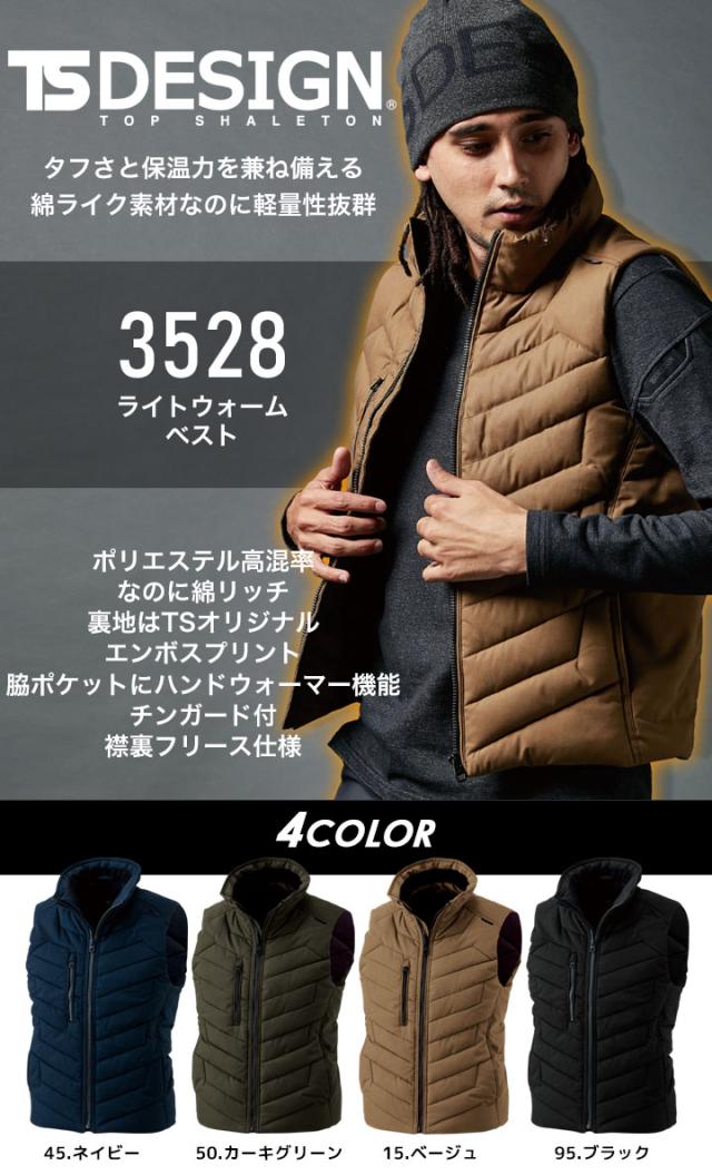 防寒ベスト TSデザイン 3528 ライトウォームベスト 防寒着 作業服 作業着 軽量 保温性 防寒服 藤和 TS-DESIGN