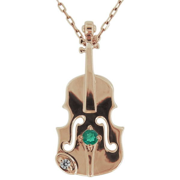 【送料無料】ネックレス・バイオリン・音楽・エメラルド・レディースペンダント・楽器・18金