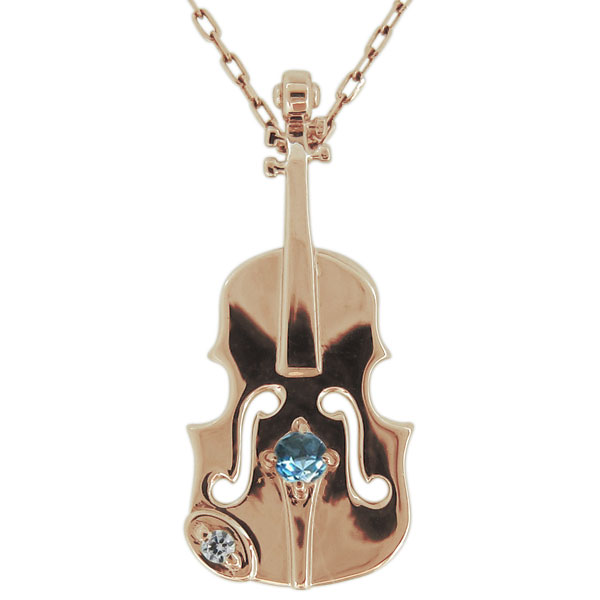 【送料無料】ネックレス・バイオリン・音楽・ブルートパーズ・レディースペンダント・楽器・18金
