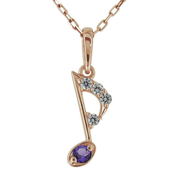 【送料無料】アメジスト ネックレス 音符 アメジスト 2月誕生石 ペンダント 18金