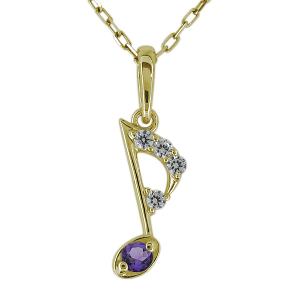 【送料無料】ネックレス 音符 レディース アメジスト 八分音符 ペンダント 10金