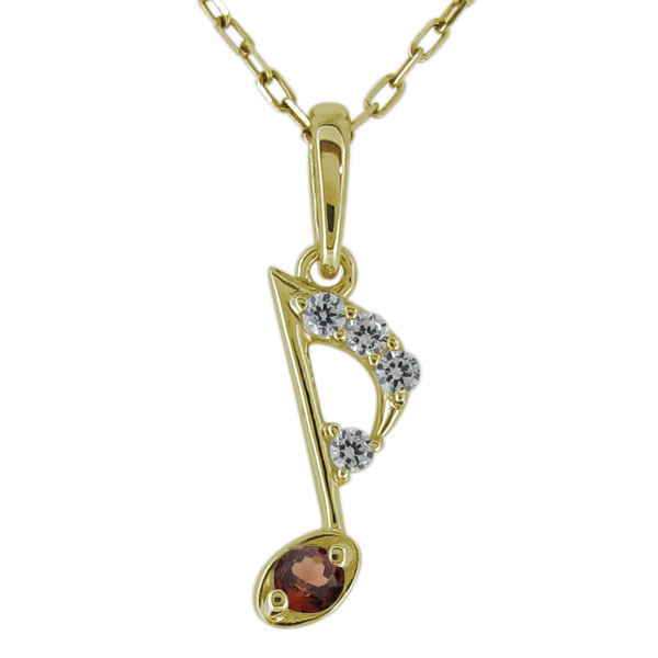 【送料無料】ネックレス 音符 レディース ガーネット 八分音符 ペンダント 10金