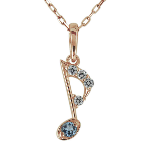 【送料無料】アクアマリンサンタマリア ネックレス 音符 アクアマリンサンタマリア 3月誕生石 ペンダント 18金