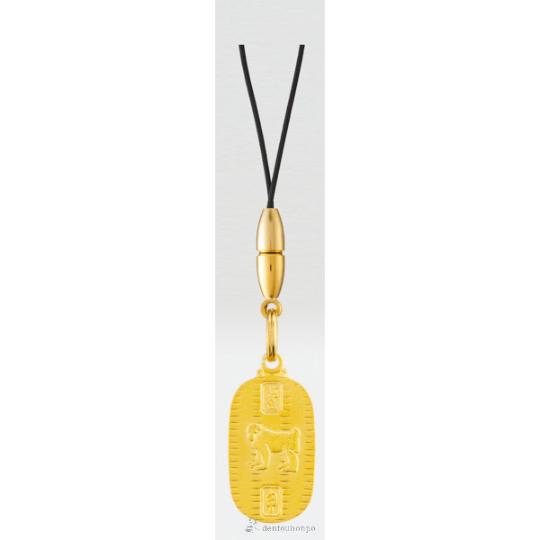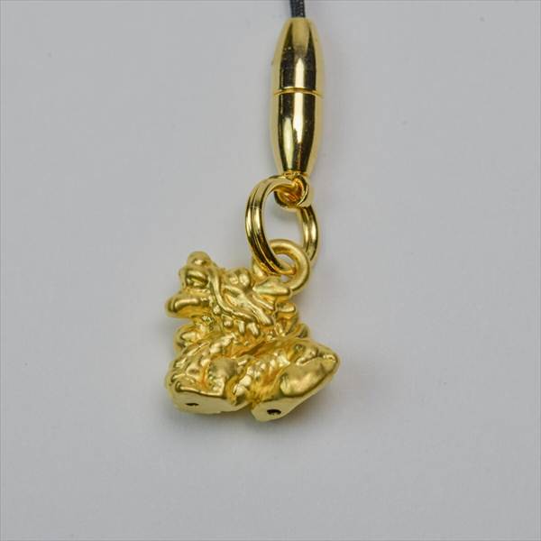細かな細工で表現された、福をよぶ純金のストラップ。福をまねく招き猫のモチーフです。