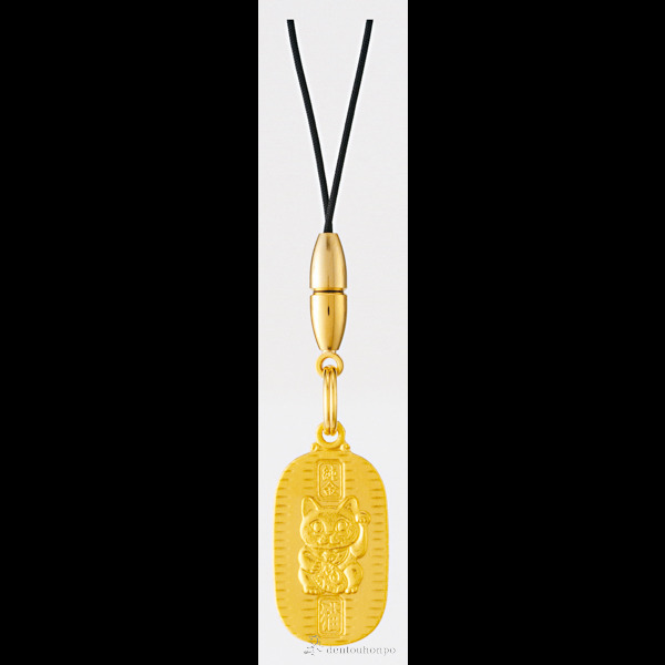 細かな細工で表現された、福をよぶ純金小判型ストラップ。小判には招き猫が描かれています。