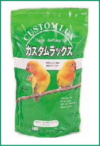 あなたの小鳥は良い食事をしていますか?カスタムラックス中型インコフード内容量:2.5L(約1,820g) 特長●オカメインコ、ボタンインコ、小桜インコ、メキシコインコ、緋インコ等の中型インコ類のために配合した専用フード。●小鳥達が大好きなたくさんの新鮮な種子を配合。●自然の小鳥達が毎日食べる食事に限りなく近づけた総合栄養バードフード(主食)です。●新鮮な種子は、ムキ餌より栄養豊富です。また、皮むく事がくちばしの運動や遊びになります。●むいた皮がケージの中や部屋に散らかりますが、愛情をもって掃除をしてあげて下さい。