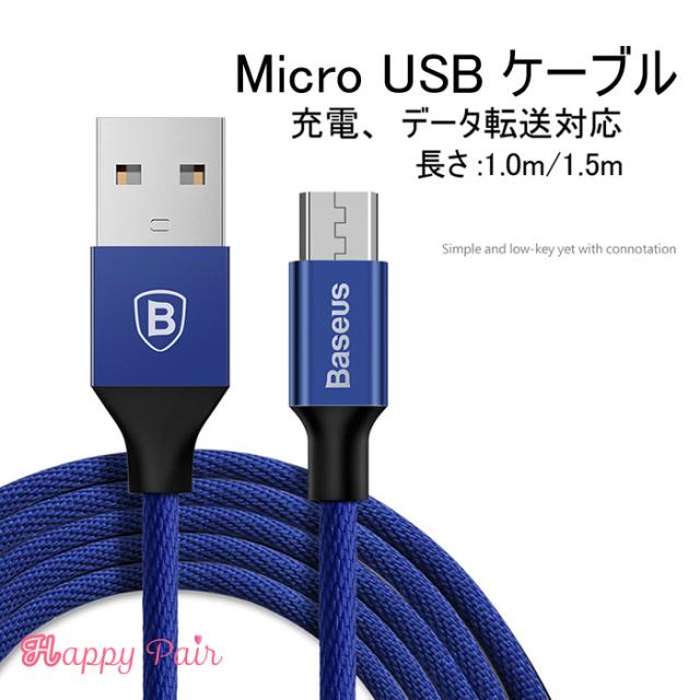 マイクロ 充電 ケーブル Micro USB 急速充電 1m 1.5m アンドロイド ブラック ブルー レッド アルミ合金 布メッシュ 充電器 頑丈 絡まりにくい データ通信 ケーブル android アンドロイド 充電ケーブル スマホ ケーブル Baseus