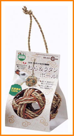 天然素材100%わら&ラタンボール●ボールの中に牧草を詰めて与えることが出来ます。●天然のわらとラタンで編み込んだボールですので安心して遊ばせることが出来ます。●うさぎ・モルモットなどの小動物のストレス解消やおもちゃにピッタリです。ご使用方法: 飼育ケージの天面フェンスから吊るしたり、 床敷の上に置いてご使用ください。材質:わら・ラタン本体サイズ:直径約95mm ※手作りの為、多少差異があります。対象動物:うさぎ・モルモットなどの小動物 メーカー:マルカン(お客様相談室:06-6744-6674)