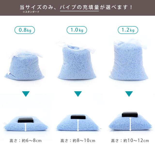 そんな貴方のために、国産パイプ枕シリーズのなかで、一番人気の「スタンダードパイプ / 35×50cmサイズ」に限り、パイプの量が3種類から選べるようになりました。