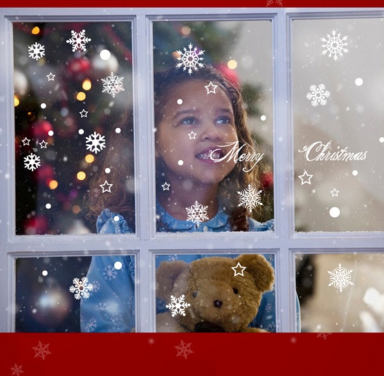 ウォールステッカー 雪の結晶 クリスマス 装飾シール 星 英文字 白色 ツリー ゆきの華 ガラス 展示窓 小物 PC デコレーションデカール