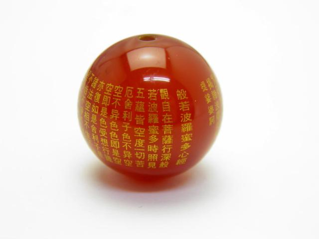 レッドメノウ (金彫り) 般若心経 20mm 【穴あり一粒売りビーズ】天然石 パワーストーン