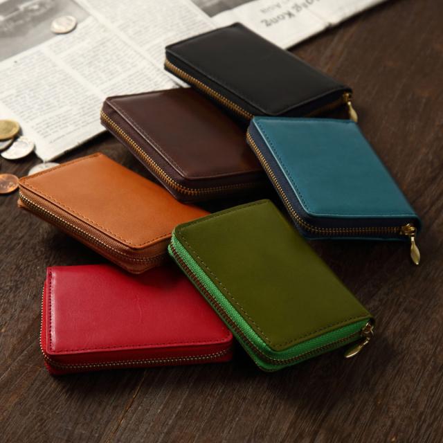 皮革鞣しの本場、姫路レザーをを使用したカード小銭入れ。外側にカード入れと、内側に小銭入れが2箇所、ポケットが3箇所と、スリムなのに充実の収納力。